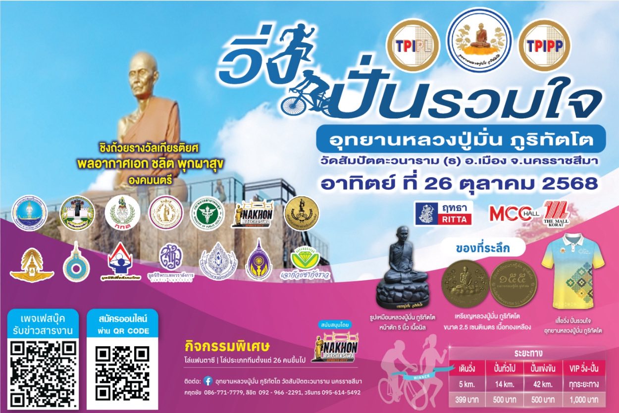 ขอเชิญชวนผู้สนใจเข้าร่วมกิจกรรม "โครงการ วิ่ง ปั่นรวมใจ อุทยานหลวงปู่มั่น ภูริทัตโต"